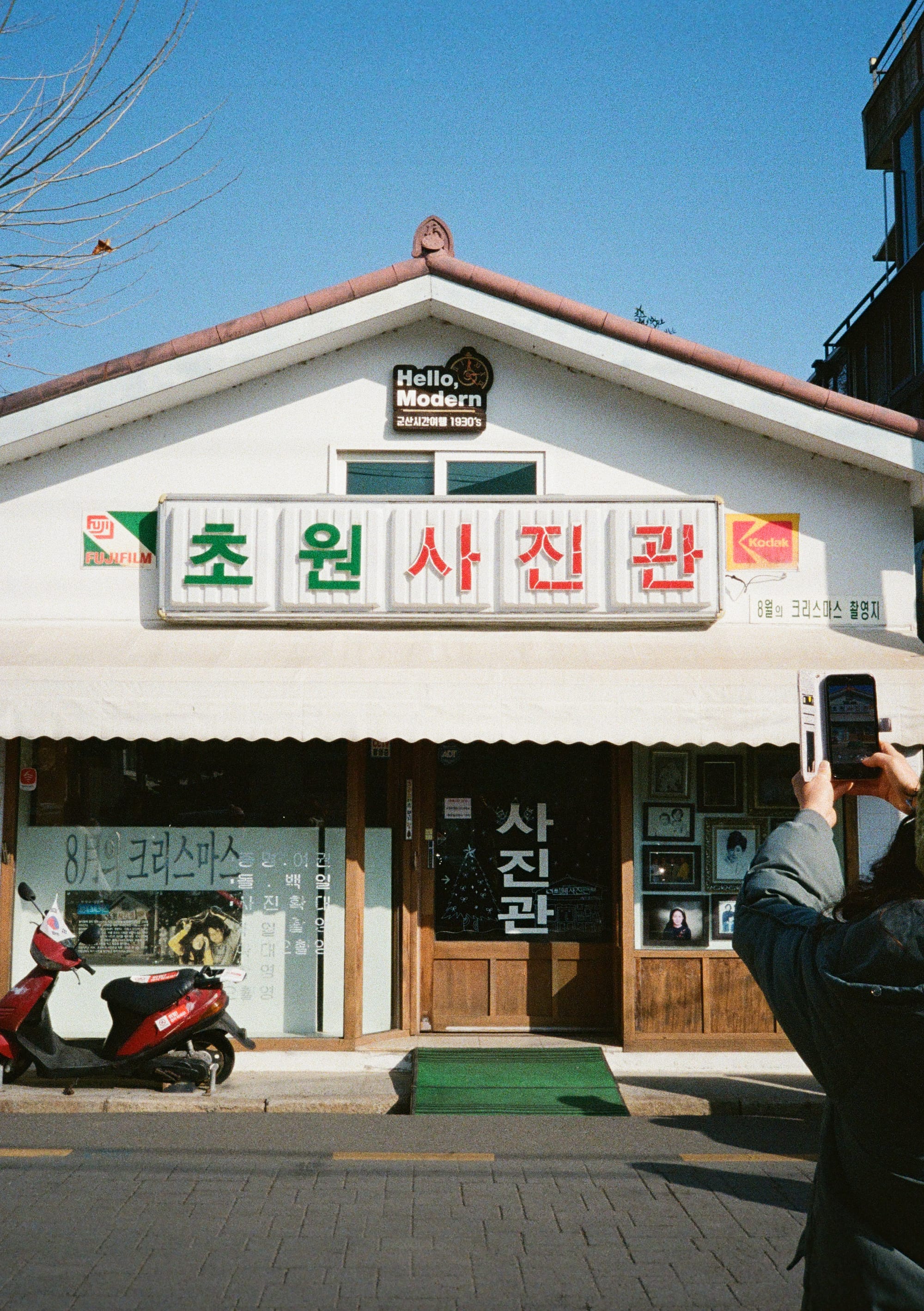 그렇게 2시간 40분 정도 달려서 주차를 하고 가장 먼저 발견한 곳은 바로 초원 사진관. 8월의 크리스마스를 작년 10월 ~ 11월 정도 즈음 봤어서 도착하자마자 영화의 여운이 다시금 올라왔다.