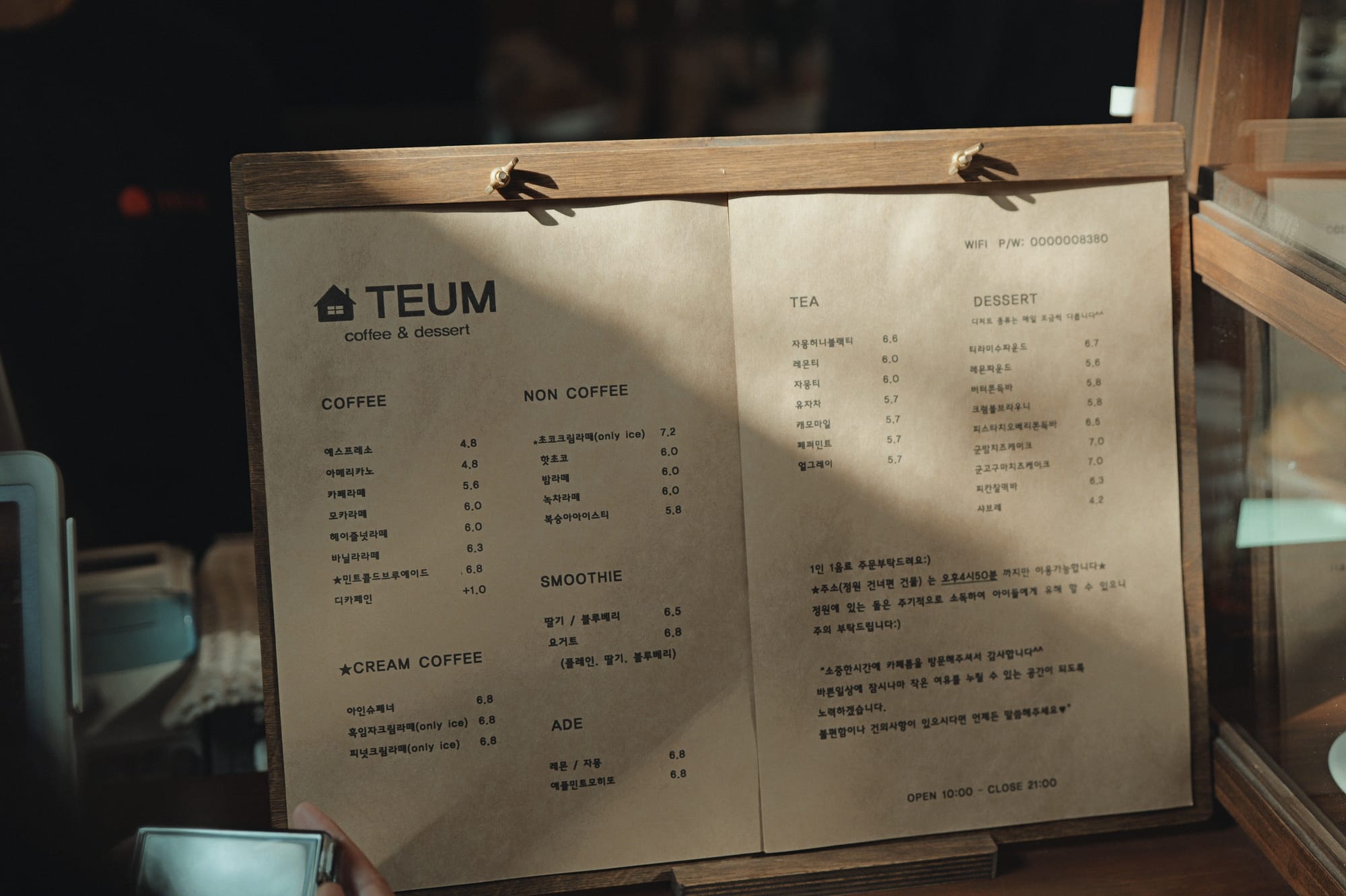 보통 이런 카페들에 막상 오면 실망하는 경우가 꽤 많은데, 카페 틈은 꽤 마음에 들었다. 천고가 매우 높은데다가 높은 천고에서 내리 쬐는 빛이 정말 예뻤고 좌석 간 거리도 적당해서 충분히 머물기에 좋았다. 아무래도 관광지의 카페여서 자리 잡기가 영 쉽진 않았지만 운이 좋게도 5분 남짓 사진 찍으며 기다리다보니 좋은 자리를 잡았다.